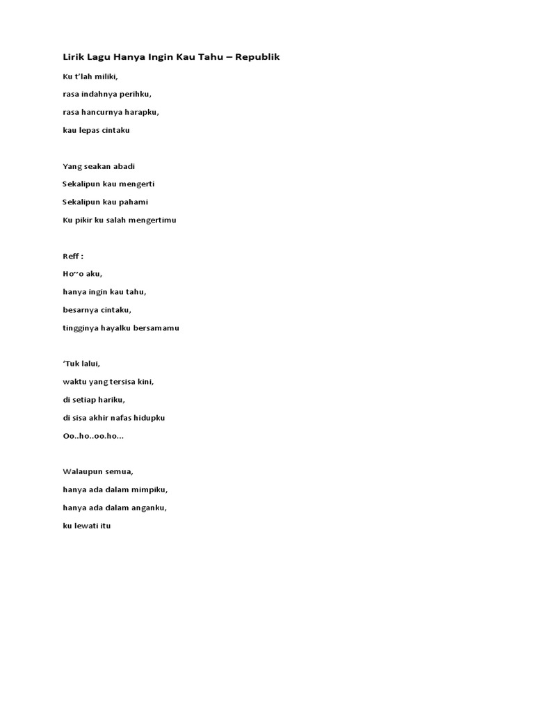 Lirik Lagu Hanya Ingin Kau Tahu Pdf